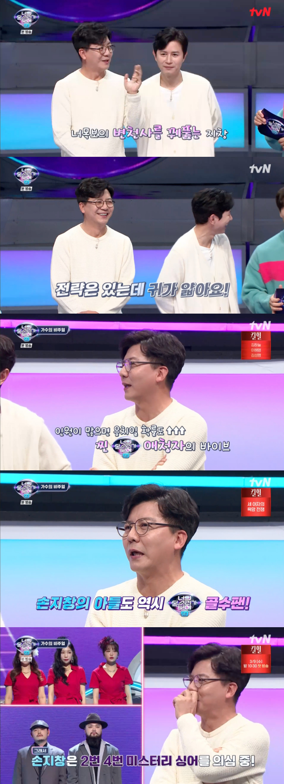 손지창은 '너목보'를 꿰고 있다며 "예전에는 립싱크를 못하면 음치였는데 요새는 한 번 꺾어 나오더라. 립싱크를 잘하면 실력자더라"고 말해 탄성을 자아냈다. 손지창은 김민종에 대해선 "전략은 있는데 귀가 얇다"며 웃음을 더했다.