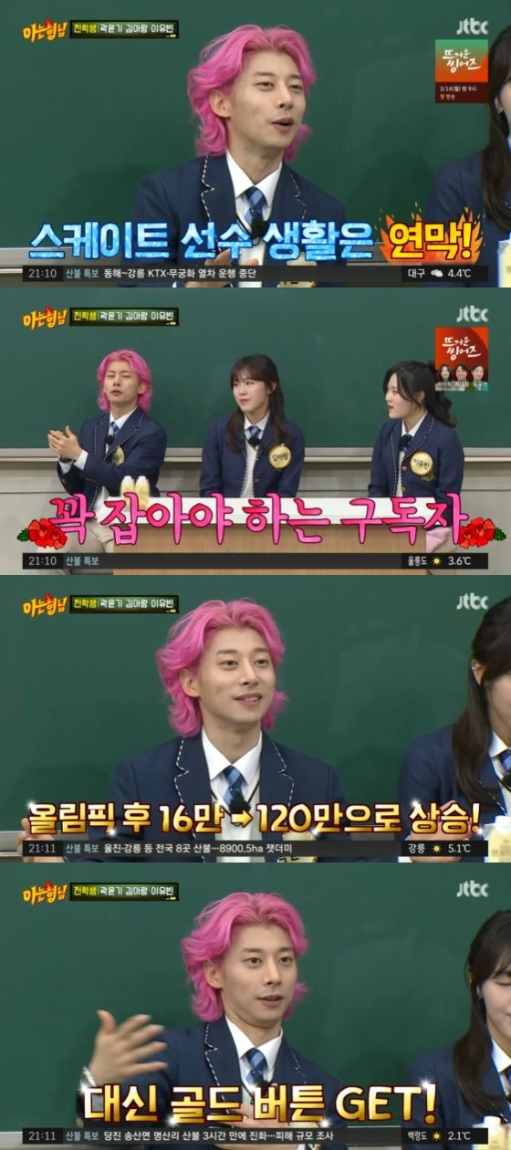 지난 5일 방송된 JTBC 예능 프로그램 '아는 형님'에서는 쇼트트랙 국가대표 곽윤기, 김아랑, 이유빈 선수가 전학생으로 출연했다.