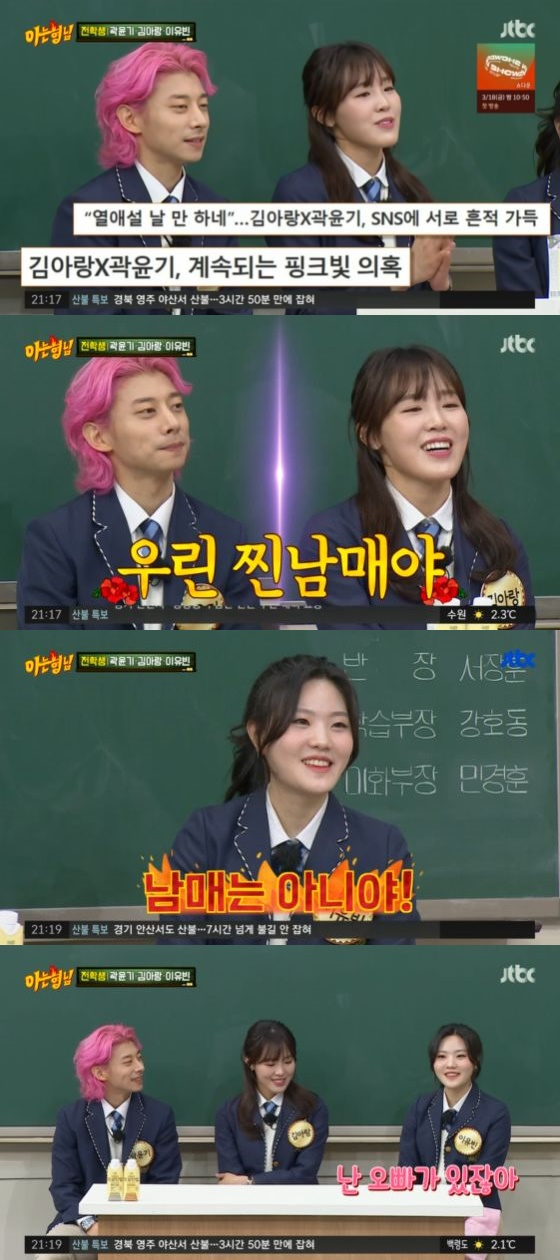 '아는 형님'에서 곽윤기와 김아랑이 열애설에 대해 언급했다.