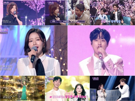 그런가 하면, '신사와 아가씨'를 빛낸 신스틸러 문희경이 멋진 축하 무대를 선보였다. 문희경은 박경희의 '머무는 곳 그 어딜지 몰라도'를 부르며 1987년 강변가요제 대상 수상자다운 노래 실력을 자랑했다. 이어 풋풋한 러브스토리의 주인공인 양병열과 김이경이 수지&백현의 듀엣곡 'Dream'으로 달달한 하모니를 뽐냈다. 두 사람은 봄 데이트를 연상케 하는 러블리한 무대로 감미로운 노래 실력을 드러냈다.