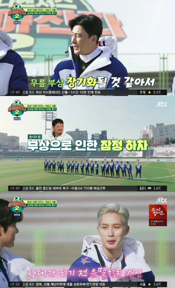 6일 방송된 JTBC 예능프로그램 '뭉쳐야 찬다2'에서는 멤버들의 근황과 함께 윤동식의 잠정 하차 소식을 전했다.