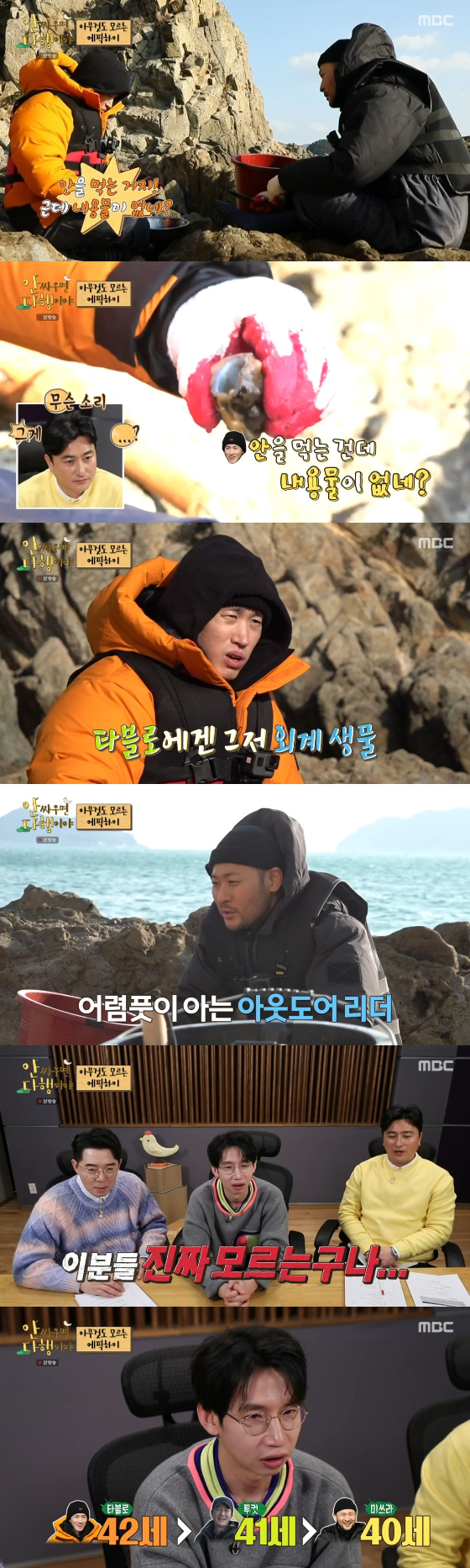 이날 방송에서 에픽하이는 배를 타고 납도 옆에 있는 봉도에 도착해 자급자족하기 위해 바닷가로 가 해삼과 멍게 등을 잡았다. 하지만 잡아놓고도 먹을 줄 모르는 에픽하이를 보고 안정환은 "진짜 아무것도 모르는구나. 이분들.. 평소에 뭘 하고 사시지? 음악만 하시나"라며 놀라워했다. 봉태규는 "횟집을 가도 제 기억에 (타)블로 형은 해삼이나 성게 같은 건 안 먹었다. 회만 먹던지 옥수수 콘을 먹던 지 한다"고 전했다.