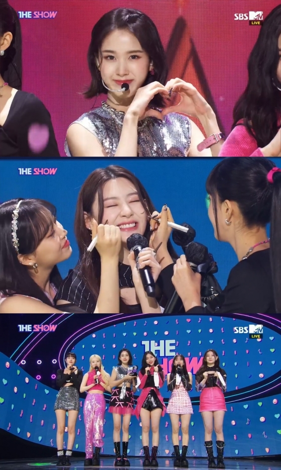 스테이씨는 페이스 페인팅을 한 뒤 앵콜 무대를 꾸몄다. 멤버들에게 어울리는 러블리한 페이스 페인팅을 서로 그려주면서 1위의 기쁨을 만끽했다.