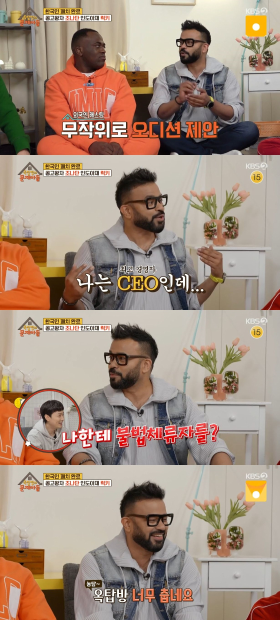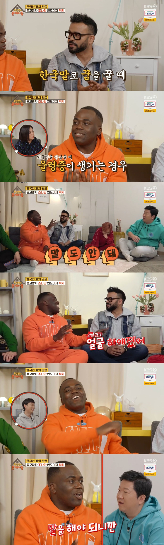 8일 방송된 KBS 2TV 예능 프로그램 '옥탑방의 문제아들'에서는 인도 출신 방송인 럭키와 콩고민주공화국 출신 방송인 조나단이 출연하는 모습이 담겼다.
