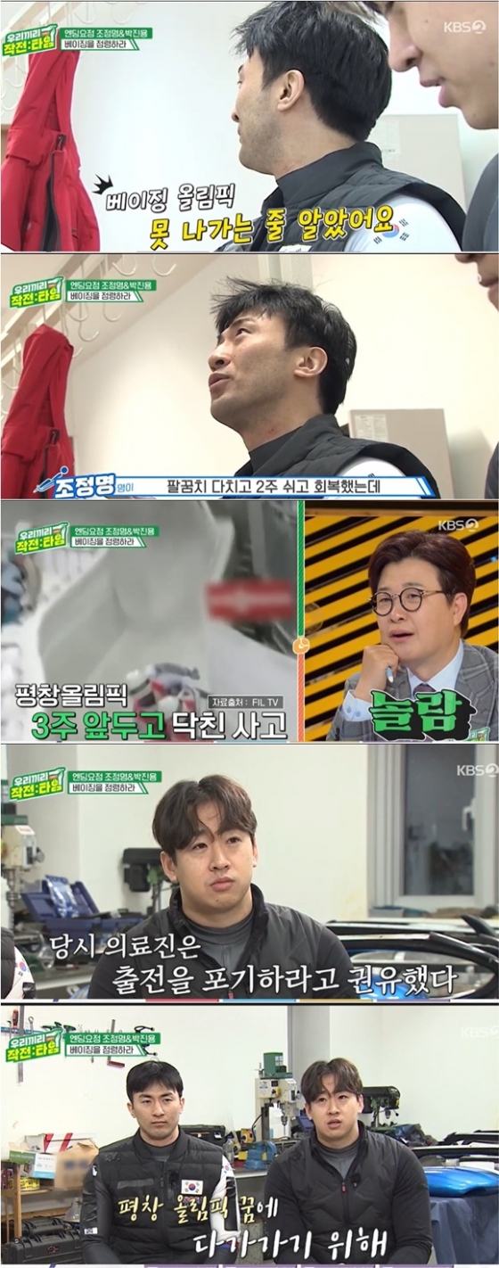 9일 오후 방송된 KBS 2TV 예능프로그램 '우리끼리 작전:타임'에서 조정명과 박진용이 부상에 대해 이야기했다.