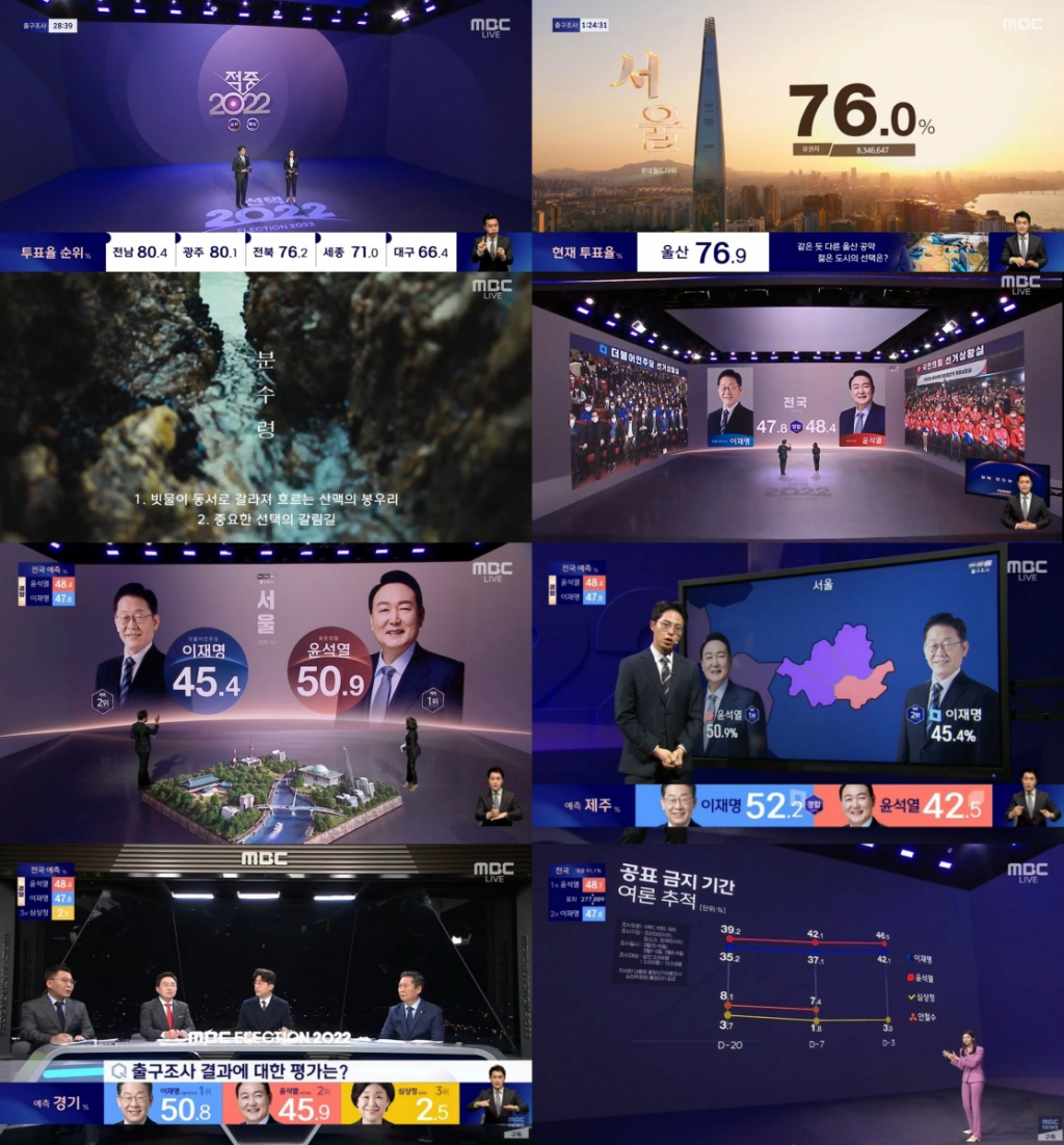 선거 방송 최초로 국악을 사용한 감각적인 카운트다운 영상으로 문을 연 '선택 2022'는 MBC만의 첨단 기술력과 이목을 끄는 컴퓨터 그래픽 이미지, 실사 영상으로 시청자들의 눈길을 잡았다. 총 길이 33미터, 높이 7미터로 바닥부터 천장까지 가득 채운 초대형 LED 무대로 시선을 압도하는가 하면, 전국의 대표 명소를 FPV 드론으로 담아낸 영상부터 국가무형문화재 18명이 선보인 전통 공예, 미니어처로 제작한 전국 대표 음식, 아기상어 영상 등으로 개표방송의 재미를 더하며 호평을 얻었다.