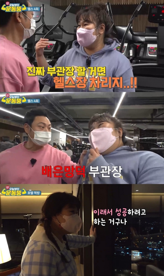 지난 9일 공개된 IHQ 예능 '오늘부터 운동뚱'에서는 지난주에 이어 피트니스센터의 부관장으로 나선 김민경의 모습이 그려졌다.