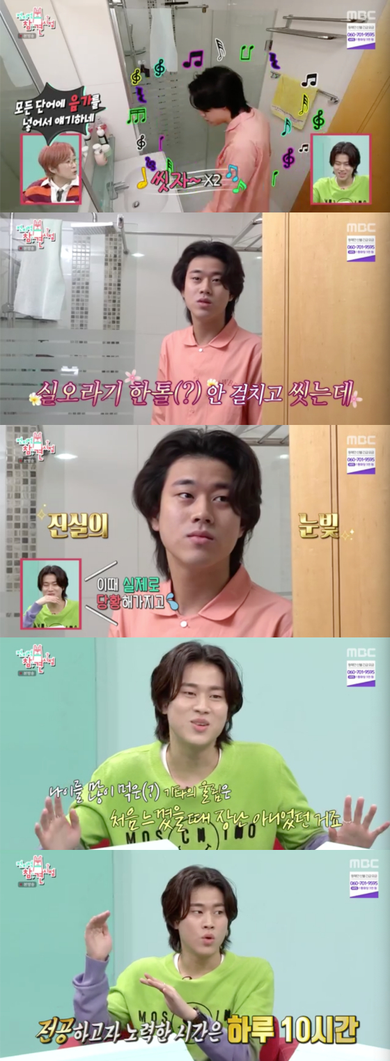 이어 공개된 영상에서 이무진은 실제로 눈을 뜬 순간부터 냉장고를 열고 씻으러 가는 모든 과정에서 모든 말에 음정을 붙여 웃음을 자아냈다. 이무진은 이어 샤워를 하려다 "지금 머리 감냐. 이렇게 입고? 원래는 실오라기 한 올 안 걸치고 씻는데"라며 당황스러움이 가득한 진실의 눈빛으로 스튜디오를 폭소케 했다. 출연자들은 "잠깐 나가달라고 하면 되는데"라며 웃었지만 이무진은 이후 잠옷을 다 적셔가며 불편하게 머리를 감았다.