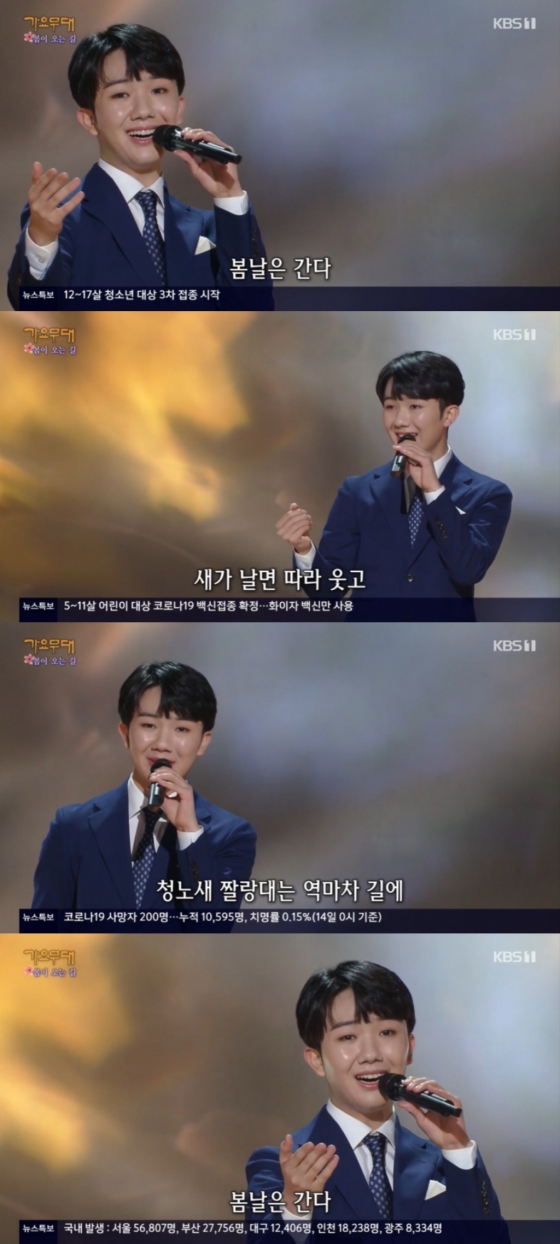 지난 14일 오후 방송된 KBS 1TV '가요무대'에 남승민이 출연했다. 이날 남승민은 파란색 수트를 입고 한층 성숙해진 비주얼로 무대에 올라 백설희의 '봄날은 간다'를 열창했다.
