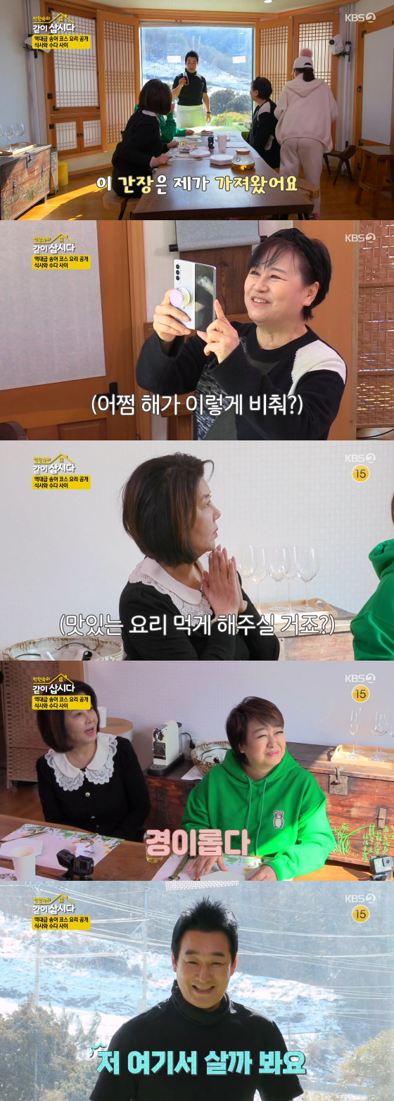 이 밖에도 이창훈은 사선녀를 위해 송어 코스 요리를 선보이기 위해 간장을 들이 밀며 "내가 가져온 간장이다"고 선보였다. 박원숙은 "아니 간장까지 갖고 다니는 남자야?"라며 놀랐다. 사 선녀 모두 "멋지다"며 감탄사를 연발했다. 또 박원숙은 엄마 미소를 하며 햇빛을 등진 이창훈의 후광에 "이거 찍어줘야지"라며 카메라를 들이밀었다. 김영란은 "멋지다"라고 했고, 이창훈은 "살아 있어?"라고 한술 더 떴다. 김영란은 "갑자기 더 멋있어 보인다"라며 칭찬을 남발하자, 이창훈은 "나 여기서 살까 봐"라며 "어디 가면 이런 대우 못 받는다"라고 말하며 웃음바다로 만들었다.