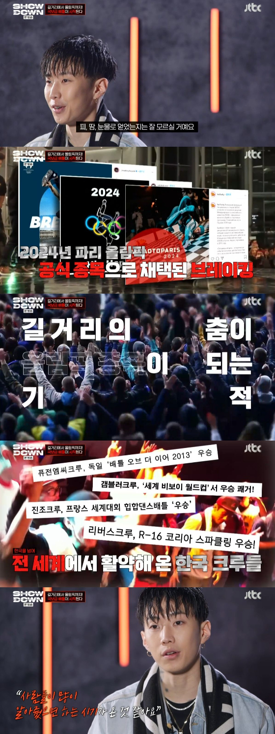 이어 박재범은 "비보이분들이 그렇게 죽도록 해서 명성까지 얻었지만, 현실은 동네 빵집에서 아르바이트하고 있다. 그분들의 그 명성은 피, 땀 눈물로 얻었는지 모르실 거다"며 "이분들이 이 몇 바퀴를 돌기 위해 얼마나 노력을 했는지 사람들이 알아줬으면 하는 시기가 온 거 같다"라고 전했다.