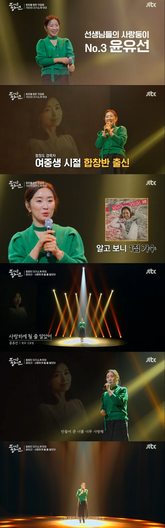 21일 방송된 JTBC 예능 프로그램 '뜨거운 씽어즈'에서는 '사랑하게 될 줄 알았어'를 열창한 윤유선의 모습이 담겼다.