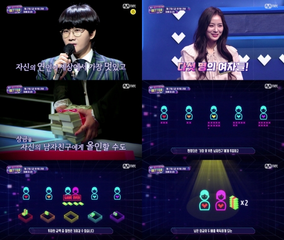 남자친구들의 감미로운 세레나데와 여자친구들의 흥미진진한 선택의 결과, 그리고 달달한 커플들의 사연까지, 시청자들에게 새로운 즐거움을 선사할 Mnet 'MY BOYFRIEND IS BETTER'는 3월 25일 밤 9시 20분 Mnet에서 첫 방송된다.