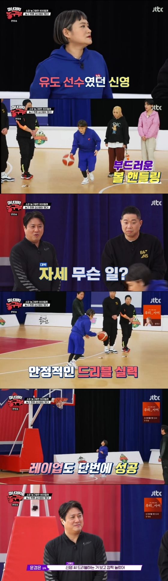 '마체농' 김신영, 안정적인 드리블→노룩패스..남다른 농구 실력 '눈길'