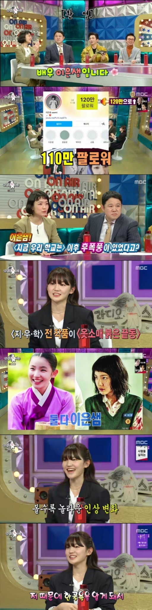 '라디오스타'에서 이은샘이 '지금 우리 학교는' 출연 이후 달라진 인기를 실감한다고 밝혔다.