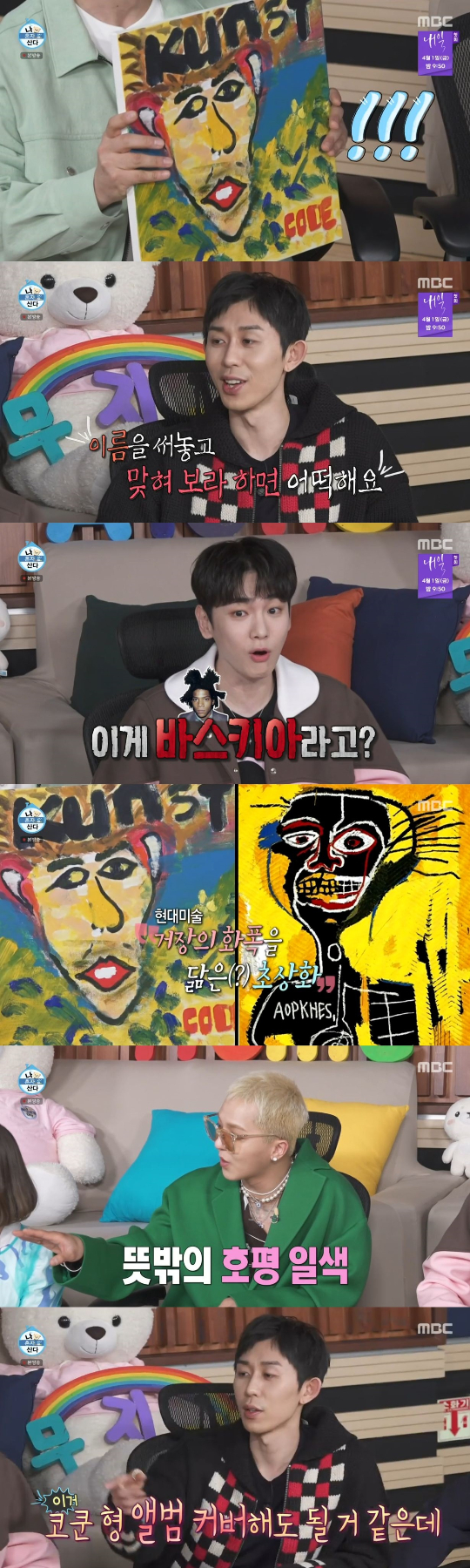 전현무가 그린 그림에는 'KUNST'라고 적혀 있었다. 전현무는 "(송)민호 덕에 새로운 취미가 생겼다"며 화방에 간 사연을 전했다. 송민호는 "거의 바스키아다"고 했고, 이에 출연진 모두 경악했다.