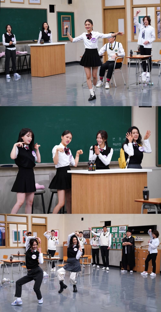 전학생들은 '아는 형님'에서만 볼 수 있는 걸그룹 선후배 간의 케미를 보여주며 서로의 히트곡 안무를 완벽 소화해내는 퍼포먼스를 펼쳐 현장 분위기를 달궜다. 특히 명품 댄스 실력으로 유명한 가희는 오마이걸의 '던던댄스(Dun Dun Dance)'를 커버하며 클래스가 다른 무대로 모두를 열광시켰다고 한다.