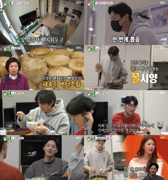 지난 27일 방송된 SBS 예능프로그램 '미운 우리 새끼(이하 미우새)'에 출연한 곽시양은 야무진 '집콕' 일상을 선보여 눈길을 끌었다. 숙취에 찌든 채로 일어난 곽시양은 칼칼한 해장 라면을 끓여 먹고 밀린 빨래를 하며 부지런히 청소했다. 털털한 동네형 같은 모습으로 집밖을 오가며 청소를 마친 그는 곧바로 식사 준비에 돌입, 소속사 후배인 배우 강영택, 조민규를 위한 한 끼를 만들었다.
