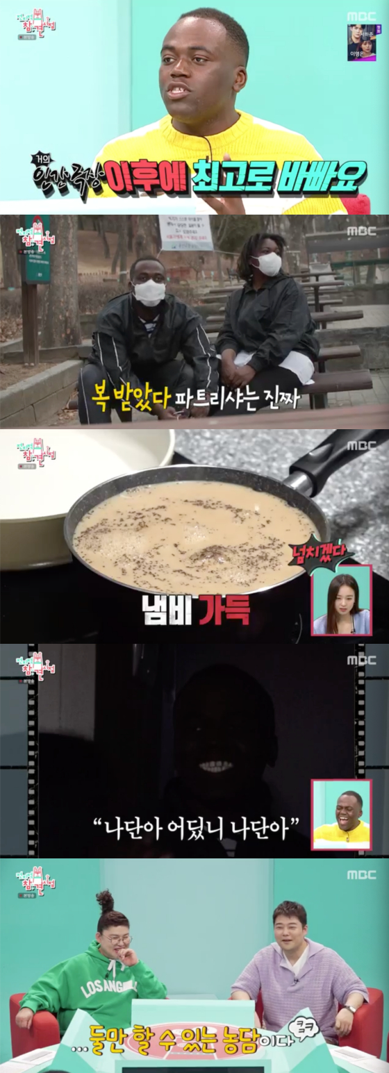 조나단은 찹쌀 꽈배기를 사들고 집으로 돌아왔고, 파트리샤가 씻는 동안 특제 밀크티를 만들며 즐거워했다. 조나단은 지난 방송처럼 티백을 찢으며 "카페 사장님들이 고수하라고 했다"고 말해 웃음을 자아냈다. 조나단은 이후 파트리샤가 화장실을 물난리로 만들자 분노하며 다투기 시작했는데, 우연히 불이 꺼지자 서로 "너 안 보인다", "오빠가 더 안 보인다"고 투닥거려 스튜디오에 폭소를 안겼다.