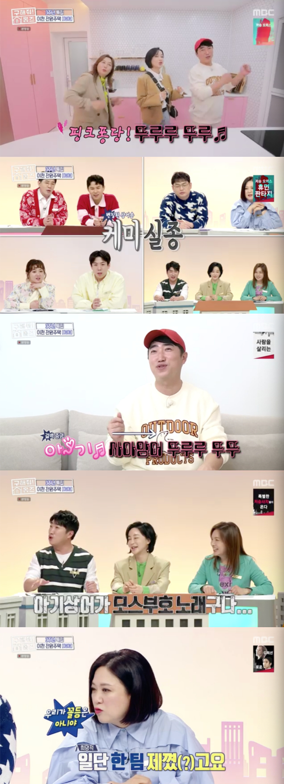 인테리어 팀 세 사람은 집 이름을 소개하며 '아기 상어' 동요를 불러 폭소를 안겼다. 전혀 맞지 않는 호흡 때문이었다. 장동민은 "연습해서 저 정도다. 처음에는 모스부호 노래인 줄 알았다"고 설명했고, 박영진은 "일단 한 팀 제쳤다", 김숙은 "우리가 꼴등은 아니다"며 환호했다.