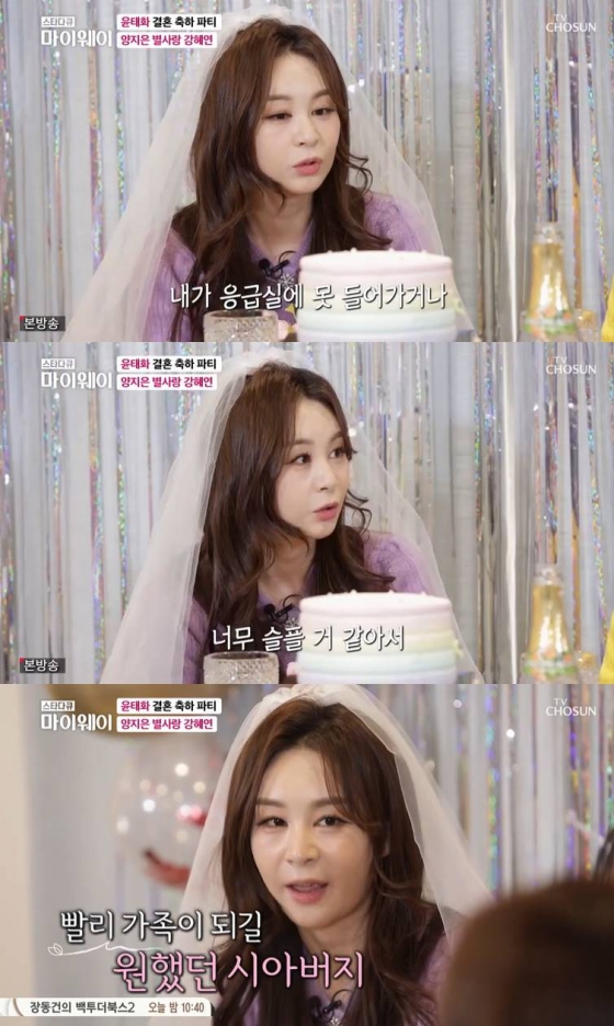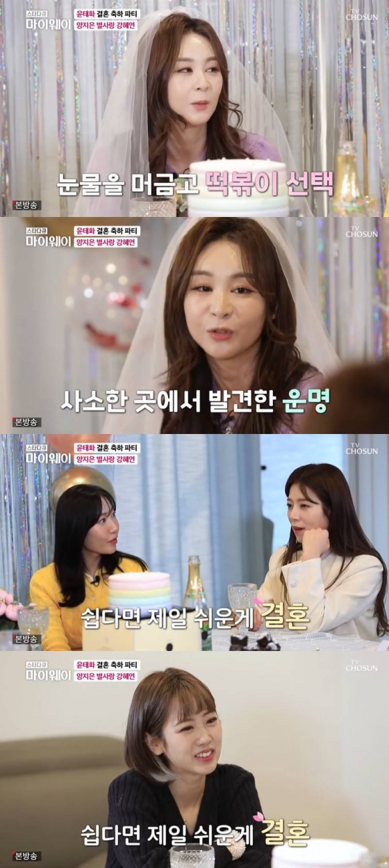윤태화는 3일 방송된 TV조선 '스타다큐 마이웨이'에서 '미스트롯2' 출신 양지은, 강혜연, 별사랑과 브라이덜 샤워를 가지며 자신의 결혼 스토리를 밝혔다.
