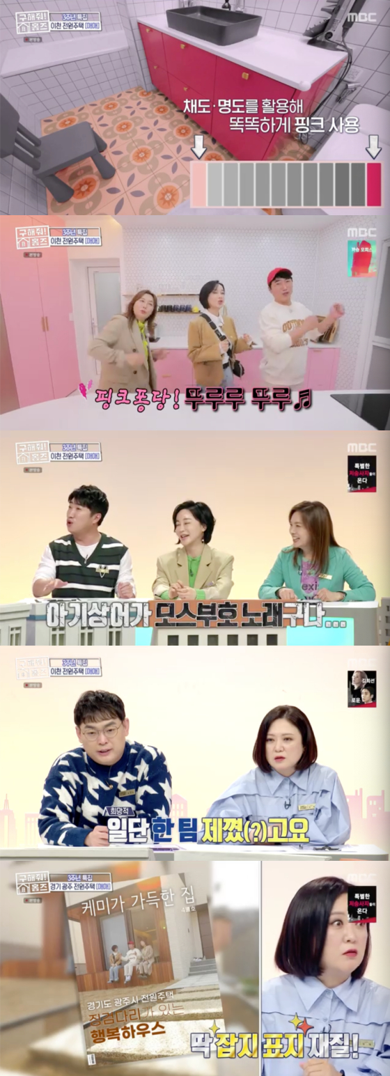 인테리어 팀의 장동민, 배우 김혜은, 조희선 소장은 먼저 이천 '핑크 퐁당 하우스'를 소개했다. 핑크 퐁당 하우스는 가정집에서는 쉬이 볼 수 없는 개성적인 핑크빛 인테리어로 탄성을 자아냈다. 또한 활용도 높은 마당과 2층 안방 순환구조, 맞춤 냉장고, 인덕션, 오븐레인지, 액세서리장 등 알찬 기본 옵션으로 눈길을 모았다. 가격은 매매가 7억 5천만 원이었다.
