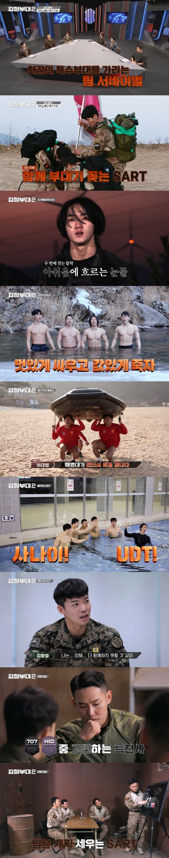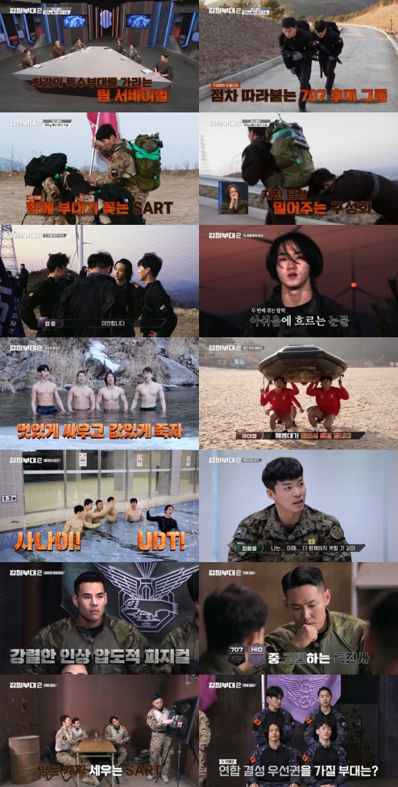이날 방송에서는 부대의 생존이 걸린 데스매치 미션 '50kg 통신 병기 수송'에 나선 SART(특수탐색구조대대), SDT(군사경찰특임대), 707(제 707 특수임무단) 중 두 번째 탈락 부대가 확정됐다.