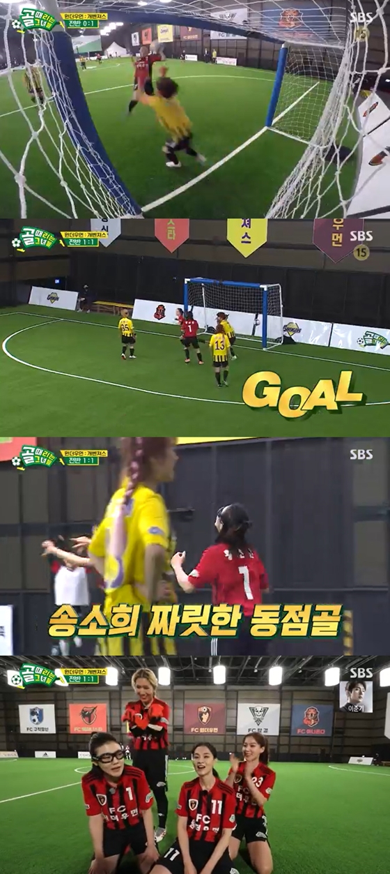 '골 때리는 그녀들'에서 FC원더우먼의 송소희가 기회를 놓치지 않고 득점에 성공했다.