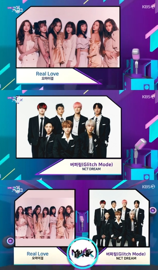 8일 방송된 KBS 2TV '뮤직뱅크'에서는 오마이걸의 'Real Love'와 NCT DREAM의 '버퍼링'이 1위 후보에 올랐다.