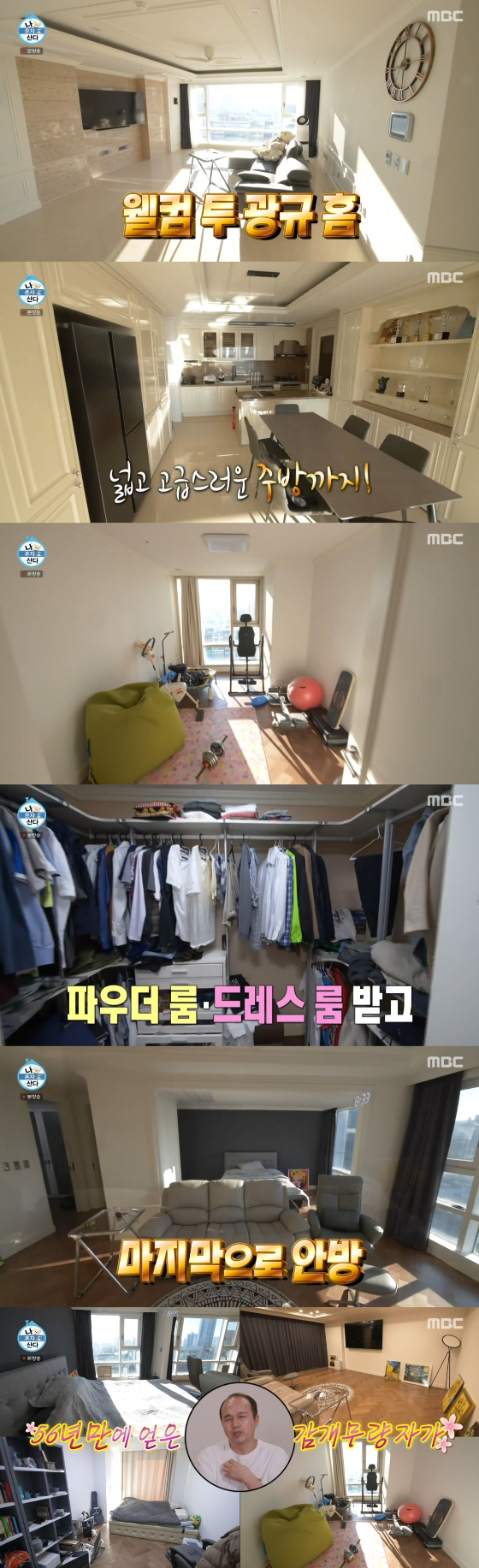 이 밖에 김광규가 56년 만에 얻게 된 송도에 있는 자가를 공개했다. 김광규의 집은 송도 신도시가 훤히 보이는 뷰에 널찍한 베이지톤 거실이 공개됐다. 이어 넓고 고급스러운 주방과 운동 기구들이 가득한 깔끔한 홈 짐도 있었다. 또 파우더룸과 드레스 룸이 있는 거실만 한 크기의 안방도 보였다. 이에 김광규는 "감개무량하다. 하늘에서 날 도우나 싶다가도 10년만 빨랐으면 좋았을 텐데"라고 헛헛한 미소를 지었다.