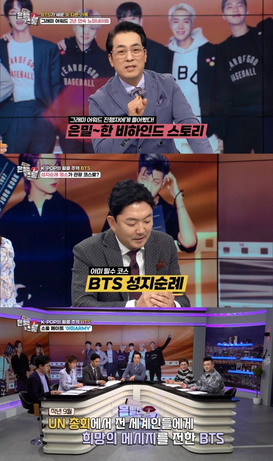 또한 최근 BTS는 그래미 어워드에 2년 연속 노미네이트되며 화제를 모았지만 끝내 수상에는 성공하지 못해 안타까움을 샀다. 이에 대해 방송에서는 그래미 어워드 중계를 했던 임진모 대중음악평론가의 인터뷰를 공개했다. 그는 그래미 어워드라는 시상식에서 후보로 오른 것만으로도 큰 이력이 된다며 수상 불발에 대한 안타까움을 달래면서도 내년에는 꼭 상을 줘야 한다는 울분도 드러냈다.