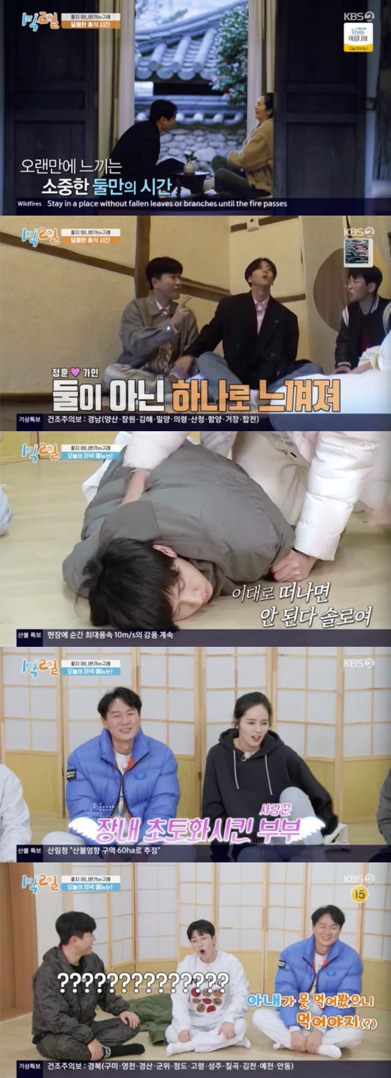 10일 방송된 KBS 2TV 예능 프로그램 '1박2일 시즌4'(이하 1박2일)에서는 18년만에 첫 동반 출연하는 연정훈♥한가인 부부의 모습이 그려졌다.