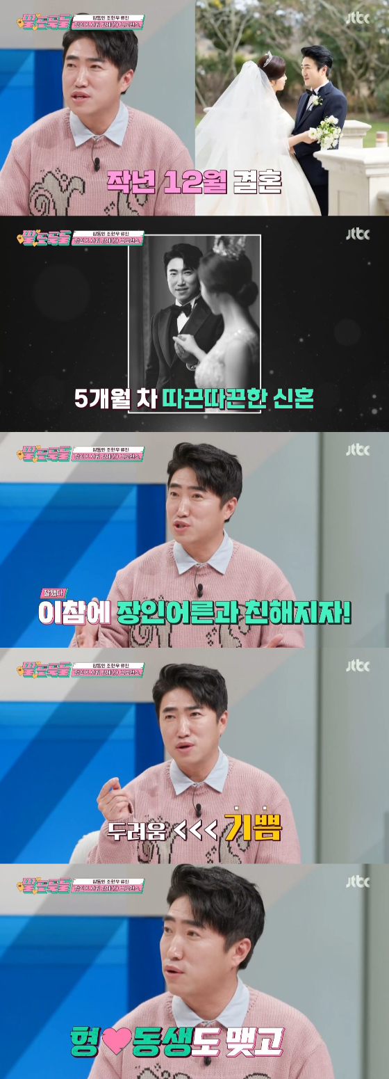 12일 첫 방송 된 JTBC 신규 예능 '딸도둑들'에서는 신혼 5개월 차, 방송인 장동민이 신혼집에 장인 주규성을 초대하는 모습이 담겼다.