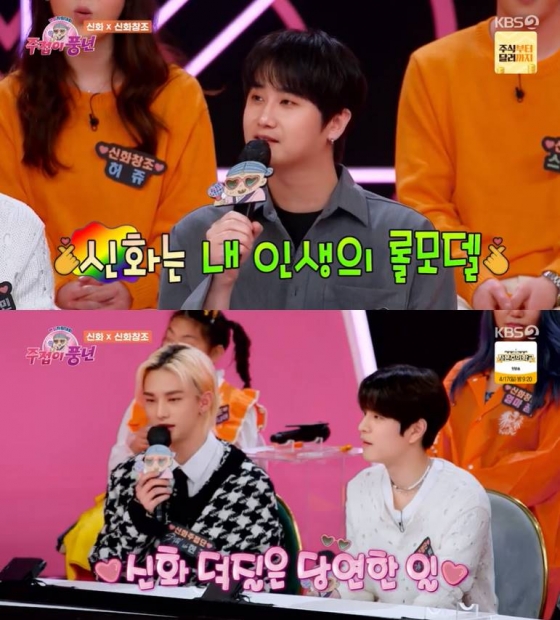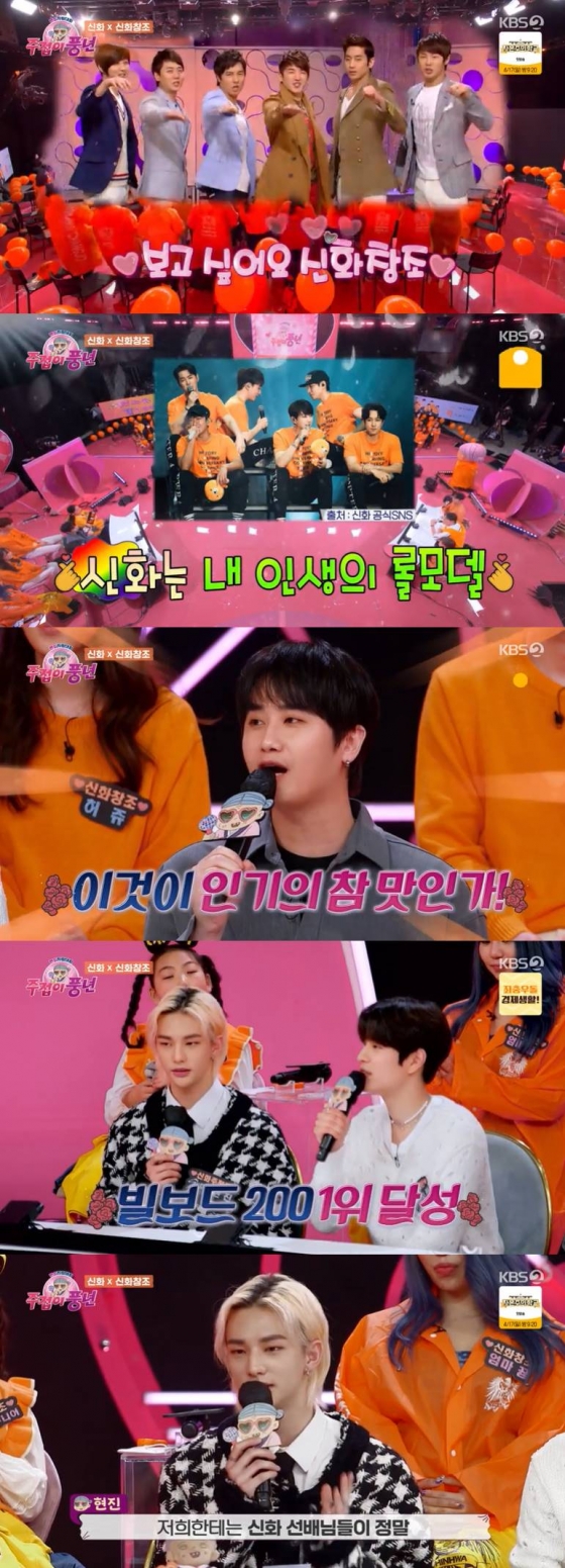14일 방송된 KBS 2TV 예능프로그램 '주접이 풍년'에서는 데뷔 24주년을 맞은 국내 최장수 아이돌 그룹 신화와 팬클럽 신화창조가 주접단으로 출연했다.