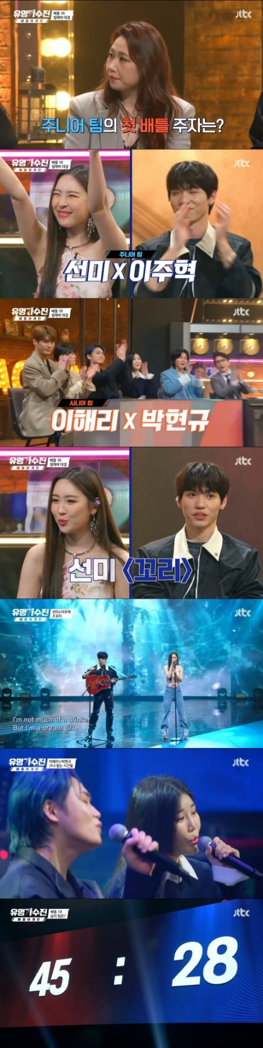 '유명가수전' 1라운드 컬래버 배틀에서 시니어팀의 이해리, 박현규가 승리했다.
