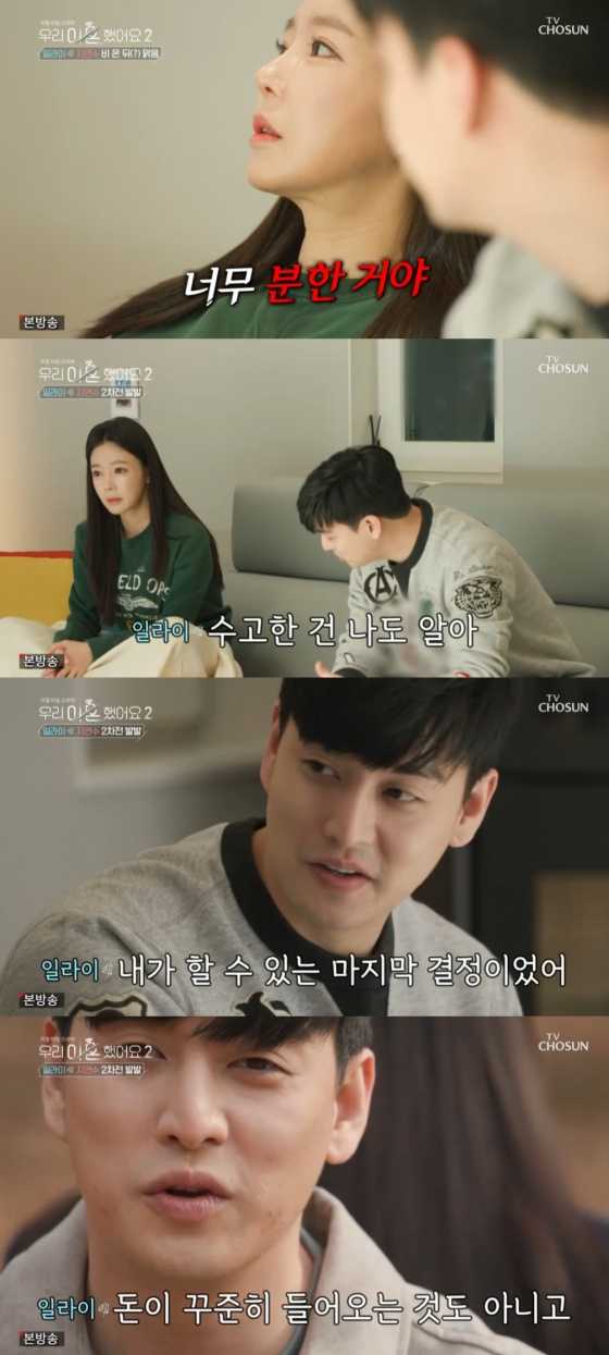 이를 들은 지연수는 "내가 그렇게 말했다고? 내가 그런 말을 했다면 돈을 받았을것이다. 이혼하겠다는 기사가 난 후 돈을 빌려주겠다고 하더라. 난 그 돈 괜찮다고 했다"라고 답했다. 일라이는 "우리가 너무 힘들어서 엄마, 아빠한테 전화했잖아. 천만원만 빌려달라고"라고 눈물을 보였다.