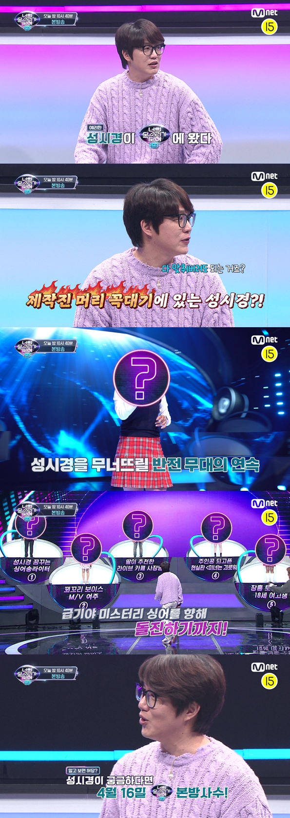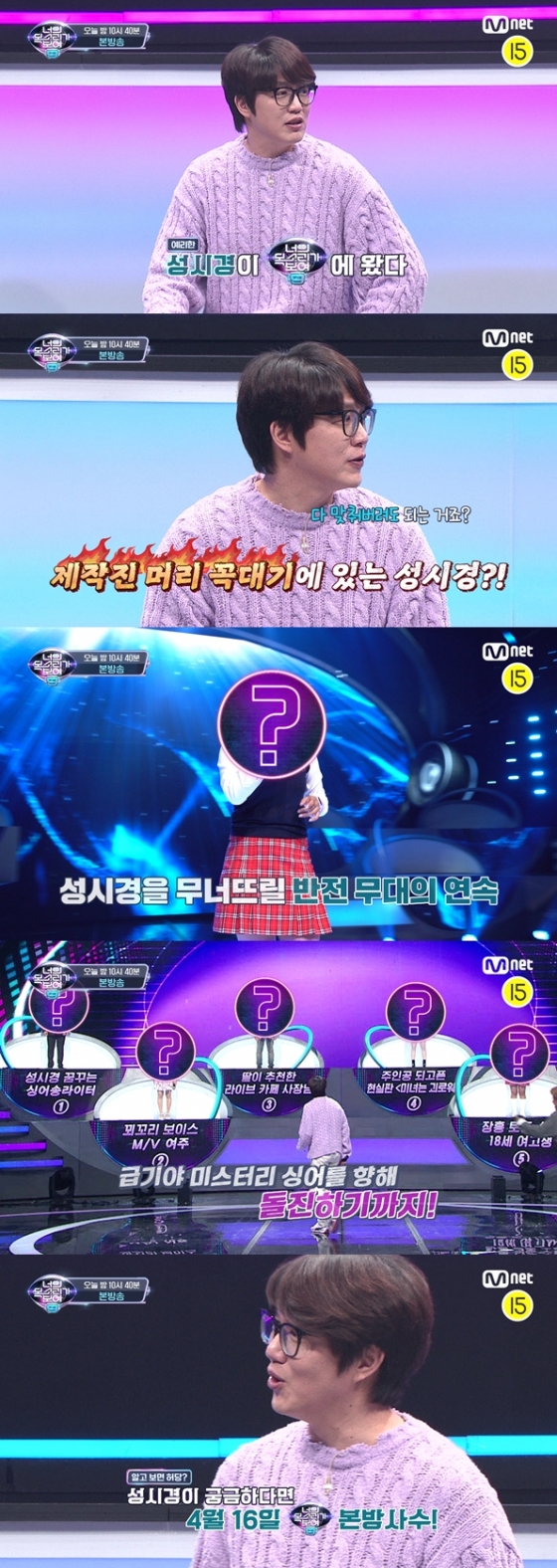 하지만 "다 맞춰버려도 되냐"며 자신만만해 하던 성시경은 만만치 않은 미스터리 싱어들의 반전 무대에 놀람을 금치 못하며 안절부절못해 호기심을 더한다. 급기야 초대 스타 최초로 미스터리 싱어들을 향해 돌진하는 등 돌발행동을 보여 성시경의 추리 결과는 어떨지 관심이 쏠리고 있다.
