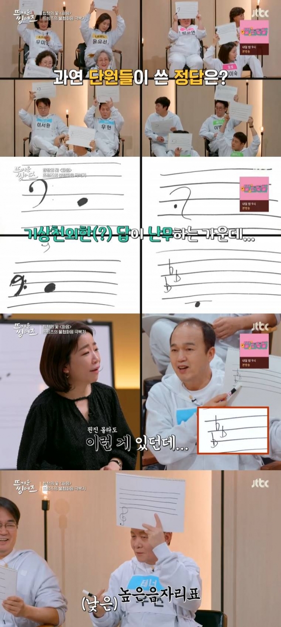 먼저 김문정은 합창단에게 높은음자리표를 그려보라고 했고, 모두 정답을 맞췄다. 이어 김문정이 합창단에게 "낮은음자리표를 그려보세요"라고 했고, 곳곳에서 기상천외한 답변이 나왔다.