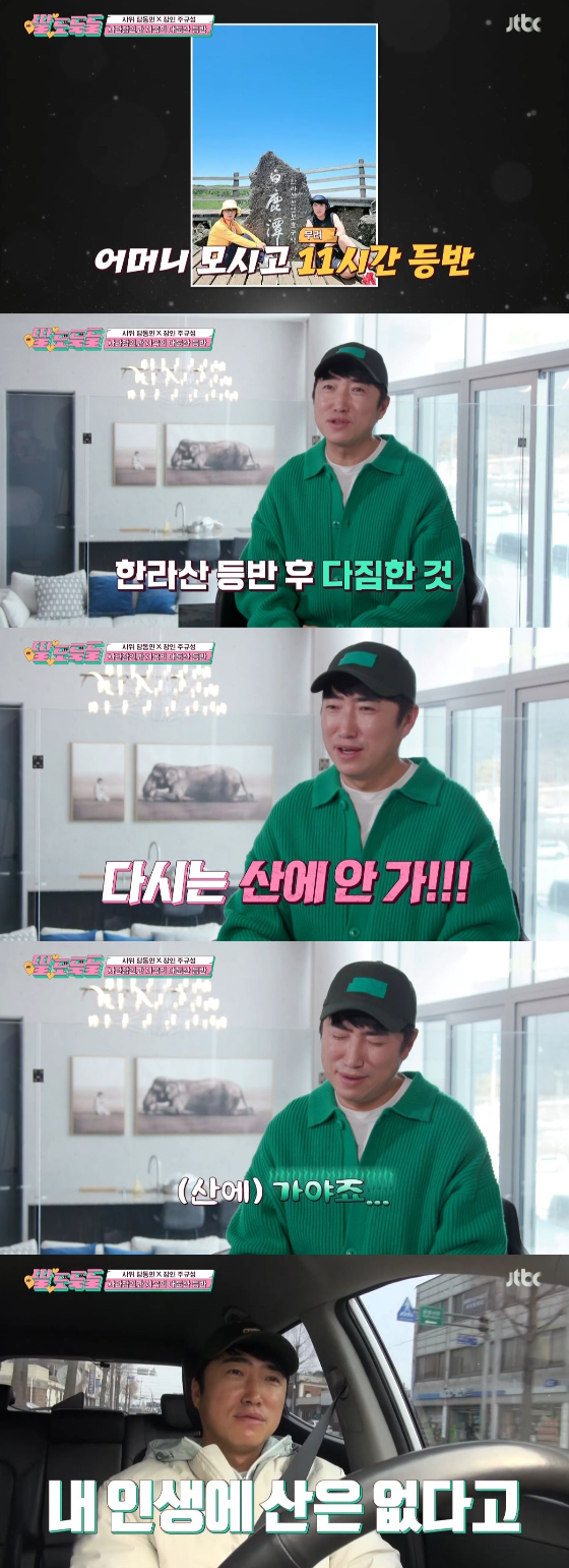 이날 방송에서 장동민은 인터뷰를 통해 "장인어른 올해 칠순이시거든요. 칠순 소원이 다 등산인가 봐요"라고 웃었다. 장동민은 "작년에 어머니 칠순이셨는데 어머니 소원이 한라산 가는 거였거든요. 어머니 모시고 백록담까지 가고 나서 다짐했어요. 다시는 산 안 간다고"라고 설명했다.