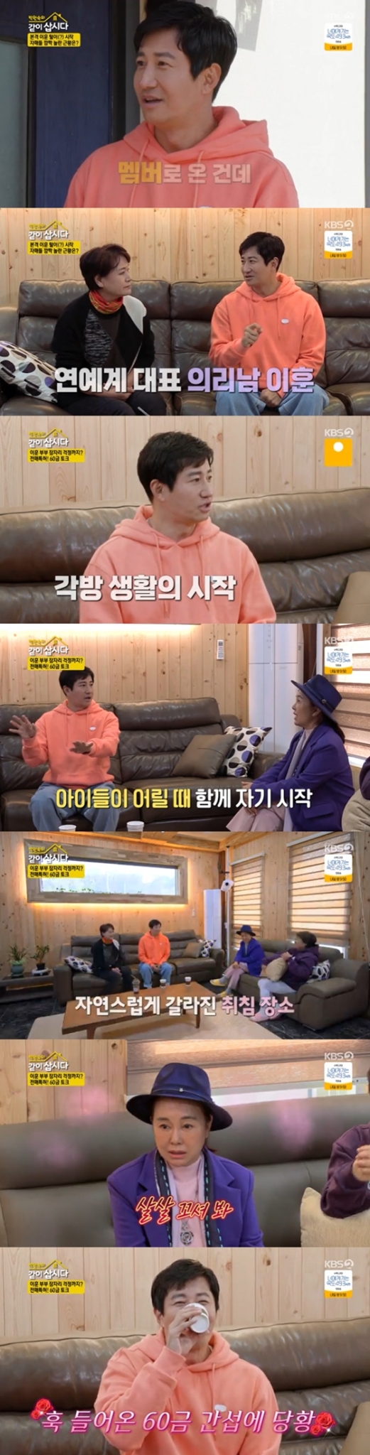 이훈이 각방을 쓰는 것에 김청은 놀라워했다. 이훈은 아내와 각방을 쓰게 된 이유에 대해 "가장 큰 이유가 있죠. 아이들"이라면서 "늘 같이 자도 아이들이 껴서 자고, 아이가 엄마랑 자려고 하니까 불편했다. 그러면서 아빠는 소파에서 자게 됐다"고 설명했다. 이어 "10년이 지나니까 아이가 따로 자도, 저희가 같이 자는 게 서로 불편했다"고 덧붙였다.