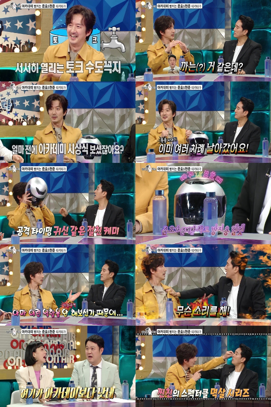 그러자 정준호는 최근 아카데미 시상식에서 벌어졌던 사건을 언급하며 은색 헬멧을 꺼내 현장을 초토화했다. 신현준은 "정준호가 머리가 커서 헬멧이 안 들어간다"라며 재차 절친을 저격해 모두를 폭소케 했다