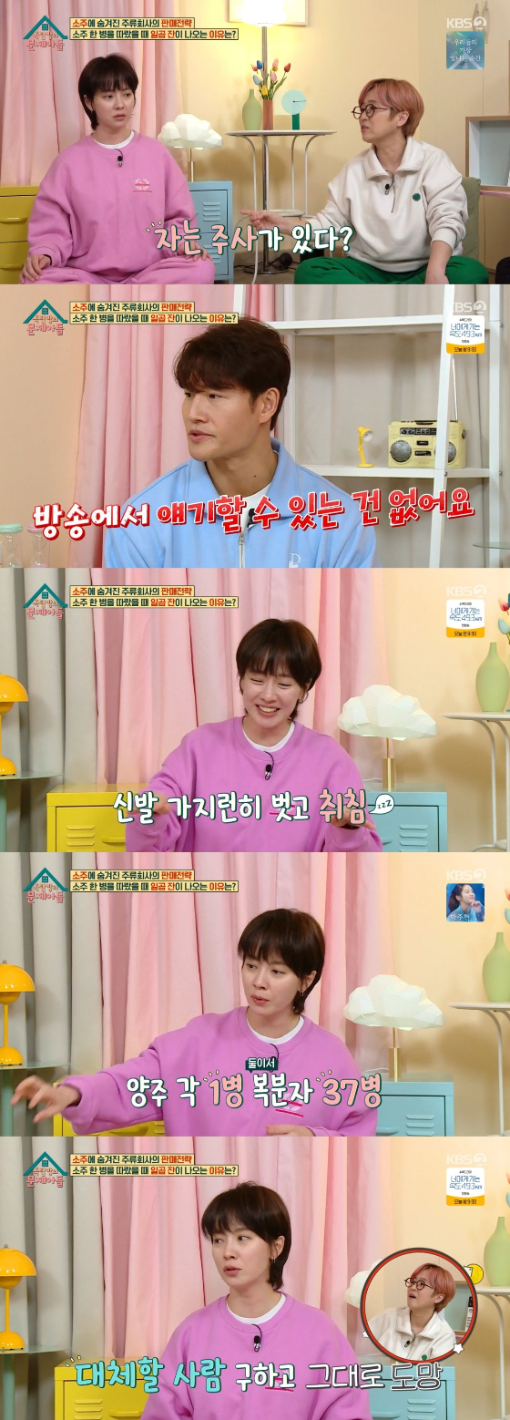 또 송지효는 연예계 알아주는 주당 임창정과의 술자리에 대한 일화를 공개했다. 당시 송지효와 임창정은 양주 각 1병에 복분자 37병을 둘이서 마셨다. 송지효는 "임창정 선배님과 술을 먹은 게 역대급으로 제일 많이 먹은 날이었다"라며 "너무 힘들었다. 대체할 사람을 구하고 도망간 적 있다"고 전하며 웃음을 자아냈다.