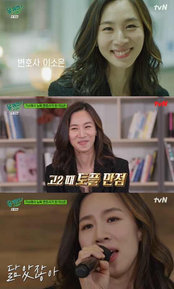 가수 겸 미국 변호사 이소은은 20일 오후 방송된 tvN 예능 프로그램 '유 퀴즈 온 더 블럭'(이하 유퀴즈)에 출연해 "아티스트로 일 하다가 지금 뉴욕에서 13년째 변호사로 일하고 있다"고 자신을 소개했다.
