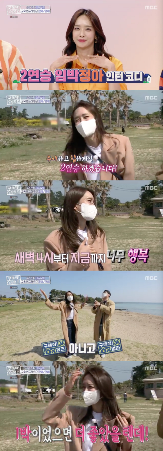 이어 박영진과 함께 제주로 향한 박정아는 "너무 행복하다. 구해줘 홈즈가 아니고 구해줘 엄마다. 제주가 웬 말이냐"며 환호했다. 박정아는 기쁨을 참지 못하고 "1박이었으면 더 좋았을텐데"라 말한 뒤 급히 딸 아윤을 향한 사과를 덧붙여 웃음을 자아냈다.