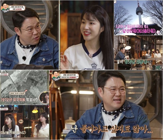 김구라는 'MZ 세대'들의 맛집 찾기 꿀팁이 무엇인지 두 사람에 물어봤다. 이에 진예와 해인은 SNS를 활용한 자신만의 노하우를 공개했다. 그러자 김구라는 "라떼 시절엔 무조건 여기"라며 1980~90년대 데이트 뷰 원조 맛집이었던 서울의 상징 '남산타워'를 언급했다. 나아가 김구라는 두 사람에게 "남산에서 자물쇠를 잠가 봤나? 남산 돈까스와 케이블카는?"이라고 질문을 던졌고, 두 사람은 솔직한 대답을 들려줘 김구라를 흡족케 했다.