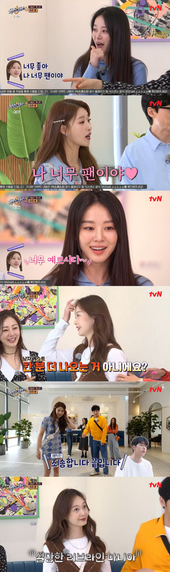 한편 이주명의 등장에 이미주는 "너무 좋다. 나 너무 팬이다"며 반가움을 전했다. 이어 이미주는 "너무 예쁘시다"고 칭찬을 아끼지 않았다. 유재석과 식센 가족들 모두 이주명의 외모에 감탄했다.