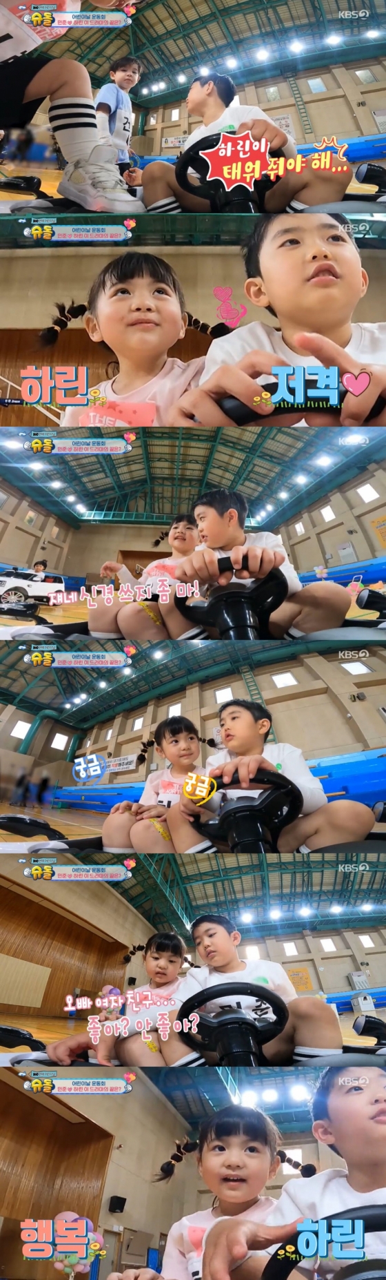 이날 방송에서 아빠들이 간식을 만들러 간 사이, 아이들끼리 체육관에서 자동차 장난감을 타며 노는 모습이 담겼다. 건후와 민준이 함께 자동차를 탄 후, 건후가 "함께 가자"고 했지만, 민준은 "하린이 이제 태워줘야 한다"며 하린과 함께 탑승했다. 민준은 "엄청 빨라서 놀랄 거다"고 했고, 하린이가 빨강 불이란 말에 민준은 급브레이크를 밟았다.