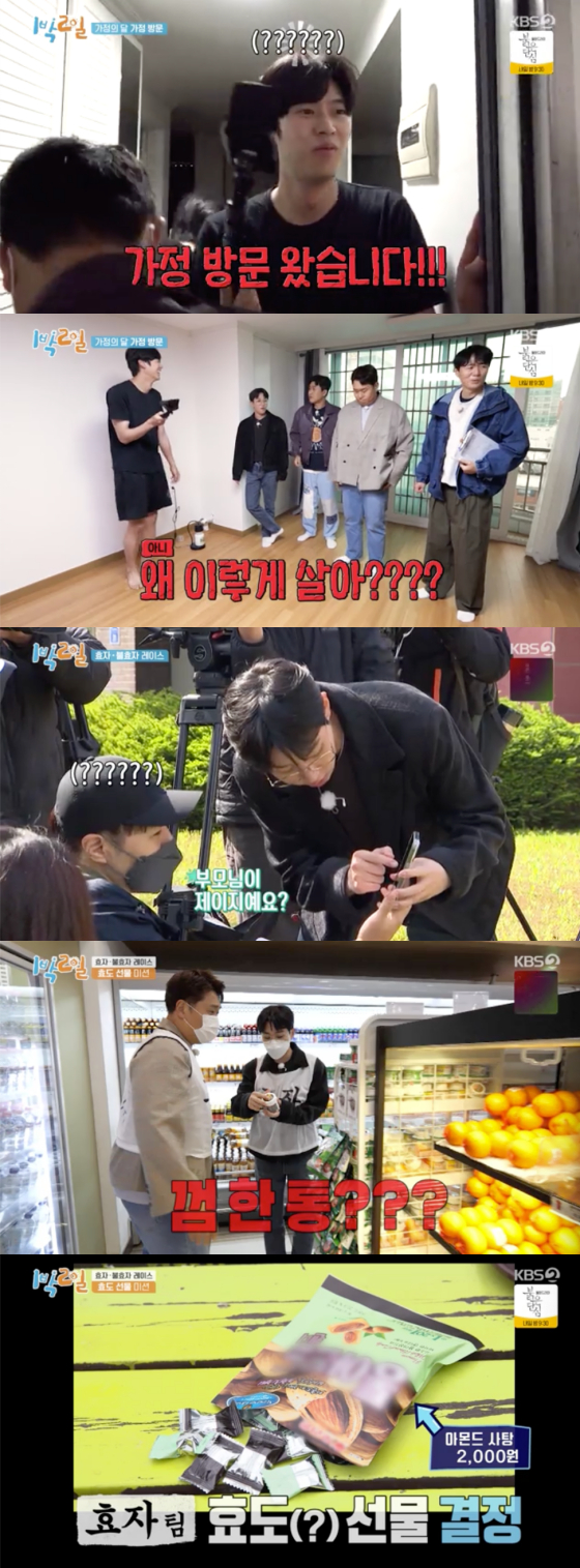 8일 방송된 KBS 2TV 예능 프로그램 '1박2일 시즌4'(이하 1박2일)에서는 가정의 달을 맞아 '효' 특집이 그려졌다.