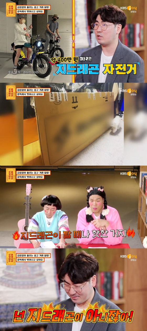 이날 방송에서 남성 의뢰인은 중고 거래 중독에서 벗어나고 싶다고 고민을 전했다. 남성 의뢰인은 "지드래곤이 타고 다니는 자전거가 400만 원 정도였는데 사게 됐다"라고 전했다. 해당 자전거는 포장 박스를 뜯지도 않은 채 모셔두었다. 이에 서장훈은 "지디니까 핫 한 거다"며 "넌 지디가 아니지 않냐"고 쏘아붙였다.