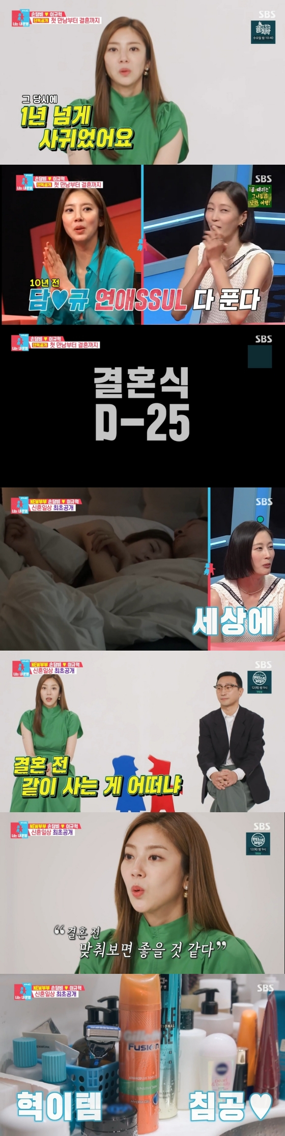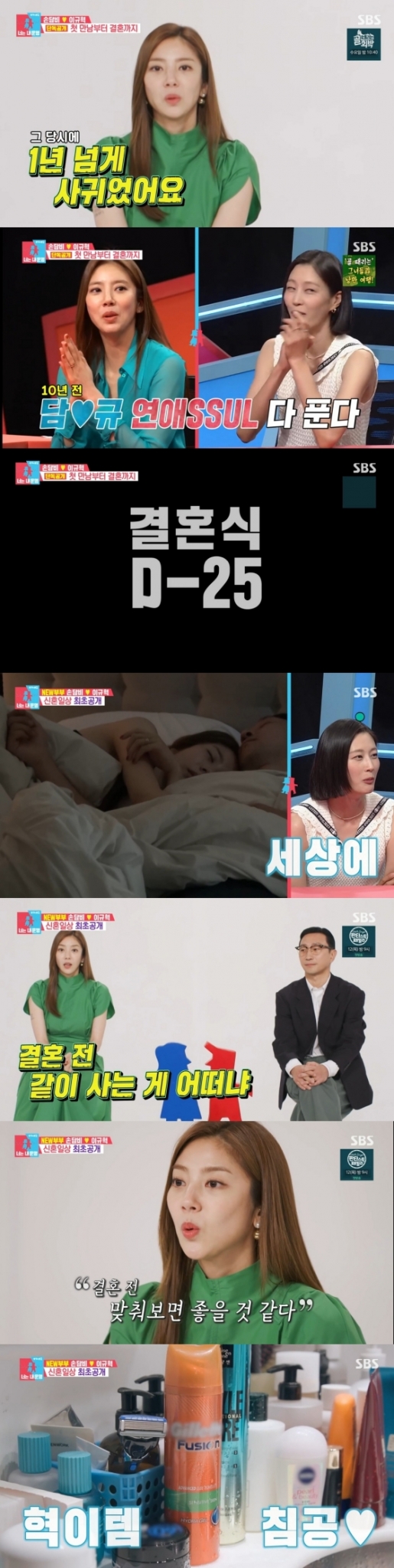 이날 방송에서 손담비는 10년 전 '키스앤크라이'를 통해 예비신랑 이규혁을 처음 만났다고 전하며, "오빠가 '키스앤크라이' 때 인기가 많았다. 매력이 있다고 생각해서 더 관심을 가졌던 것 같다. 그때 1년 넘게 사귀었다"고 깜짝고백해 모두를 놀라게 했다. 이어 손담비는 자신의 집이 연말까지 계약이 된 점, 이규혁의 집이 먼 점 등을 고려해 결혼 전에 미리 동거하기로 했다고 밝혔다. 두 사람은 평일엔 서울에 위치한 손담비의 집에서, 주말엔 남양주에 위치한 이규혁의 집에서 지내기로 합의를 봤다고 전했다.